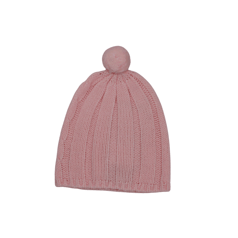 - Gorrito de lana rosa con borla – cálido y suave. Talla 3 meses.