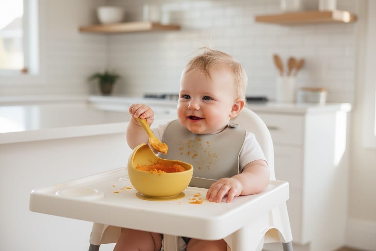 Este cuenco de silicona en color ocre, acompañado de una cuchara a juego, es ideal para introducir alimentos sólidos y fomentar la autonomía en la alimentación de los más pequeños. Su base con ventosa asegura una fijación firme a la superficie, evitando deslizamientos y derrames. El diseño curvado y el respaldo elevado facilitan que los niños aprendan a comer por sí mismos sin complicaciones.
