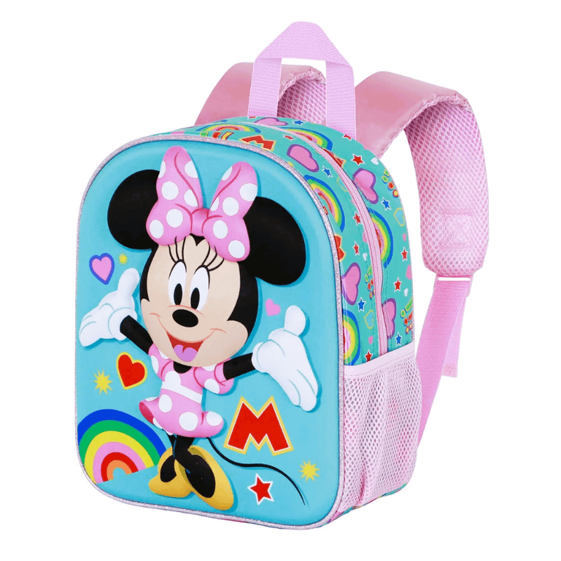 La mochila preescolar 3D Disney Minnie Mouse es la compañera perfecta para los más pequeños en su día a día en la guardería o sus primeras aventuras escolares. Con un alegre diseño en relieve frontal de Minnie, colores vivos y detalles de arcoíris y corazones, esta mochila se convierte en el accesorio ideal para llevar siempre a su personaje favorito.