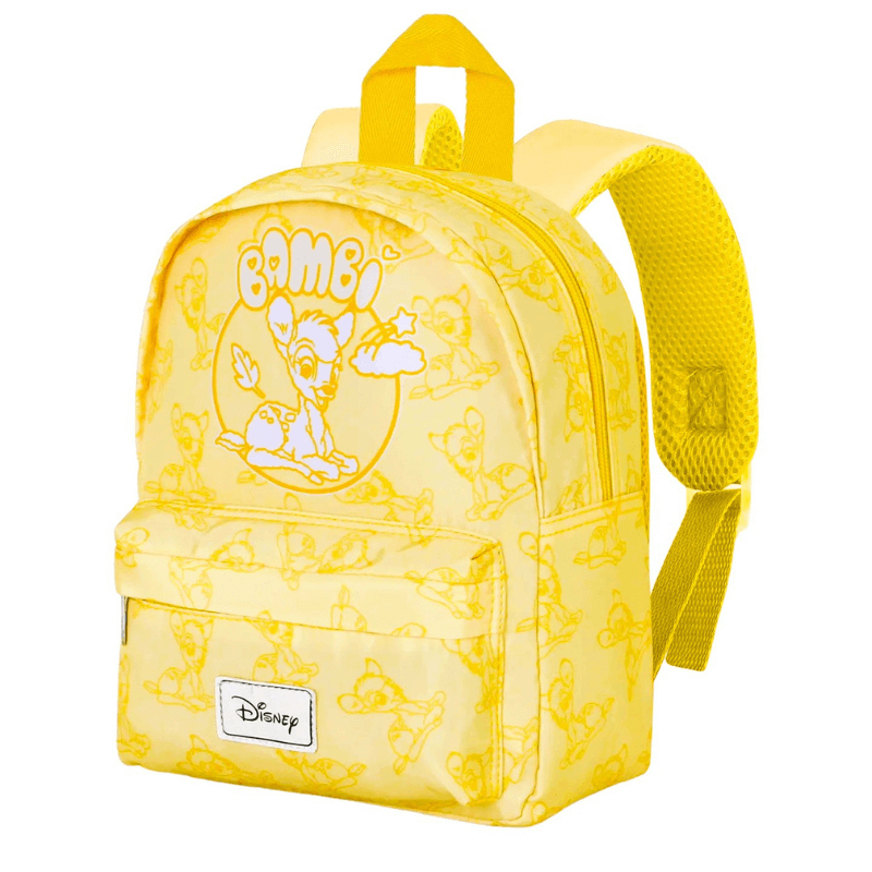 Mochila preescolar ligera Disney Bambi en color amarillo. Con compartimento principal, bolsillo frontal y tirantes ajustables. Ideal para guardería y vuelta al cole.