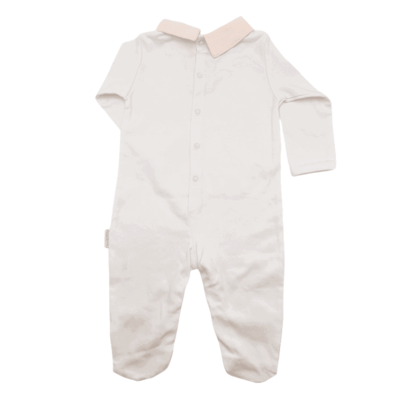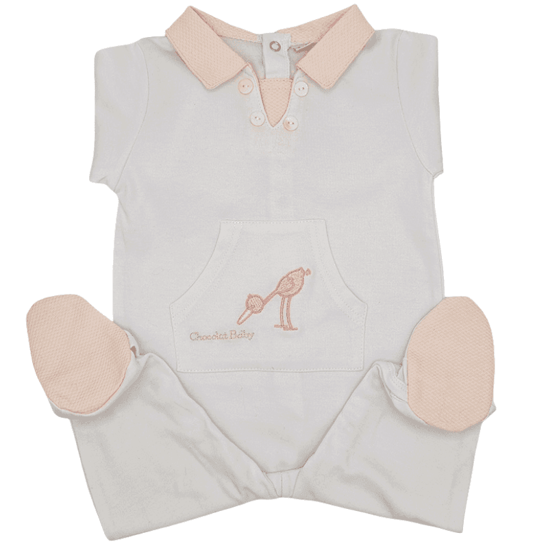 Este encantador pijama de Chocolat Baby combina suavidad, elegancia y comodidad para los primeros meses de tu bebé. Confeccionado en un algodón suave de alta calidad, presenta un diseño de cuello tipo polo con detalles en rosa empolvado que aportan un aire distinguido y delicado.